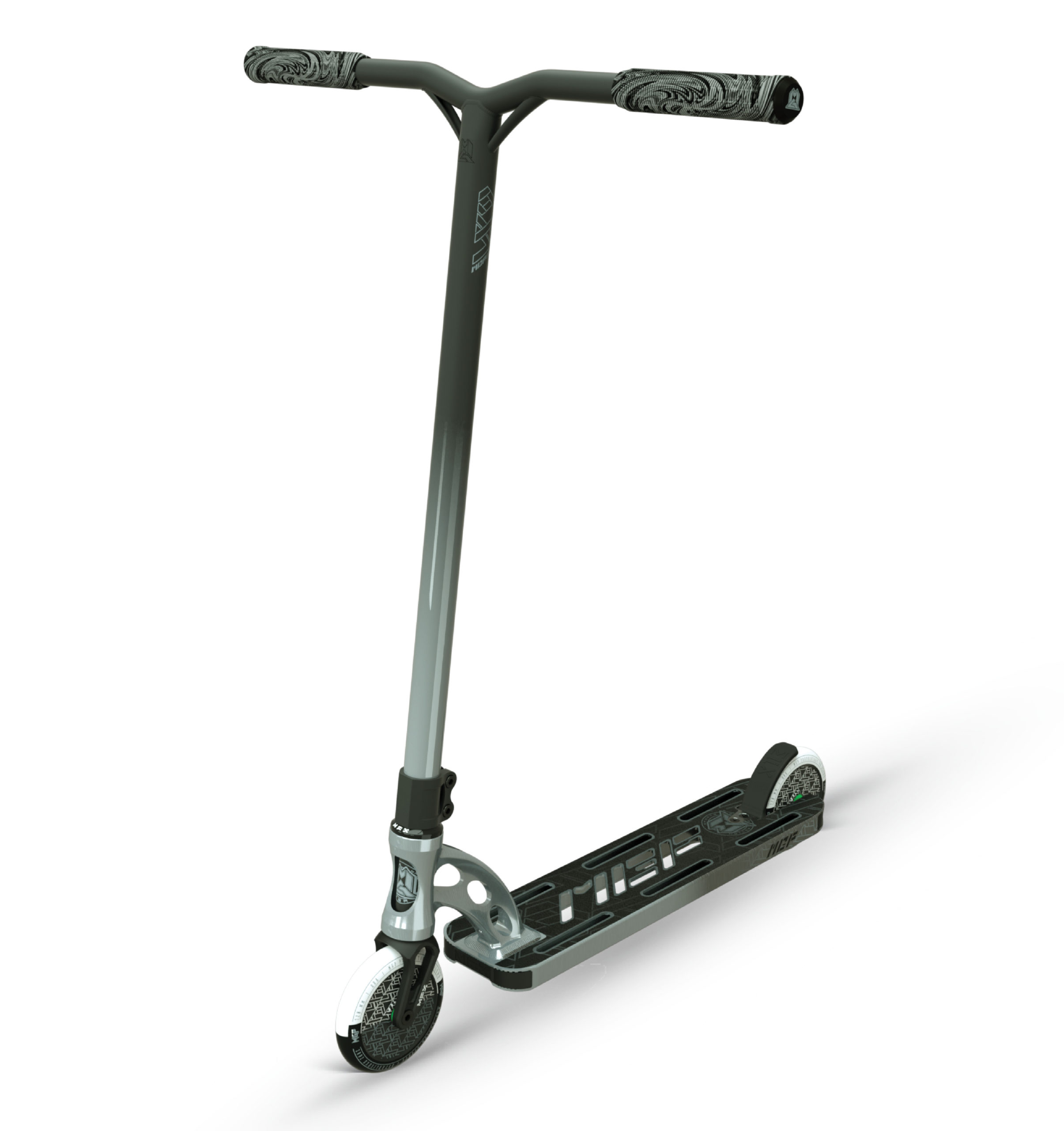 גוף הקורקינט – דק להדסט אינטגרלי, אורך 20 אינצ', רוחב4.8 אינץ' עשוי מאלומיניום 6061 T4 ו-T6 עבר טיפול בחום ומחורץ בטכנולוגיית הדור השלישי של MGP