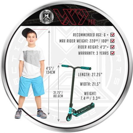 ה-VX9 PRO דגם ה"פרו" של MGP מתאים לבנים ובנות מגיל 6 ועד משקל רוכב מירבי של 100 ק"ג. הפרו הוא כל מה שסקוטר צעיר צריך!