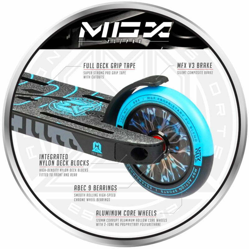 ה MGX P1 קובע את הרמה במה שניתן לקבל בקורקינט פעלולים מוכן מהקופסה עם רכיבים איכותיים מלמעלה למטה שנבנו על בסיס קורקינטי הפעלולים הנמכרים ביותר והמוצלחים ביותר בעולם.