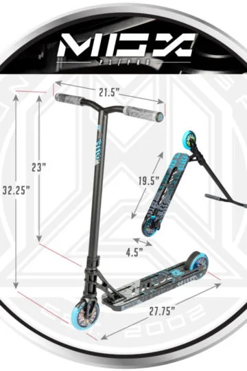 ה MGX S1 מיועד לצעירים ביותר בחבורה שמתחילים את דרכם עם סקוט מקצועי עם מידות מתאימות – אורך דק (משטח הדריכה) הוא 18 אינץ בלבד (כ-46 ס”מ) וגם הכידון המתאים לצעירים ביותר ברוחב 18 אינץ (46ס”מ) ובגובה 22 אינץ (56 ס”מ). זהו קורקינט פעלולים מוכן מהקופסה עם רכיבים איכותיים מלמעלה למטה שנבנו על בסיס קורקינטי הפעלולים הנמכרים ביותר והמוצלחים ביותר בעולם.